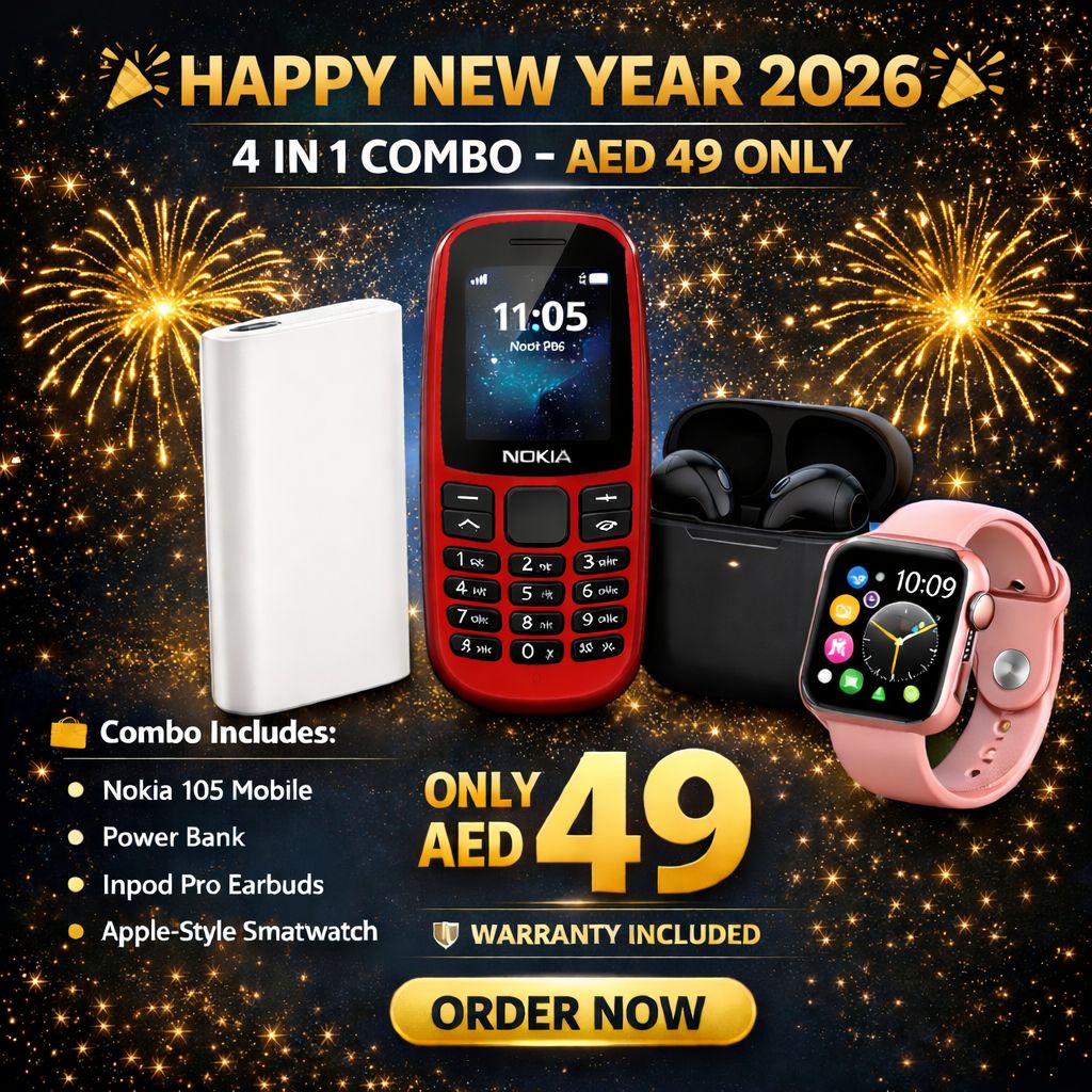 New Year Offer 4 in 1combo: Nokia 105, Powerbank, Inpods pro,Smart watch